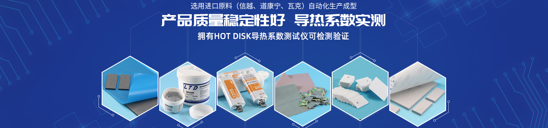 公司具有從原料配方、混煉、配色、攪拌、抽真空到硫化成形等一條龍生產能力。主要產品有:導熱硅膠片,導熱陶瓷片,導熱硅脂,導熱泥,導熱灌封膠,導熱雙面膠,導熱石墨膜等導熱絕緣材料。阻燃防火性能符合U.L 94V-0 要求,并符合歐盟SGS環保認證 及ROHS要求??蔀槭謾C、LED照明、電源、筆記本電腦,平板電腦、家電、網絡產品等 相關行業的客戶提供一站式導熱絕緣材料產品及散熱解決方案!